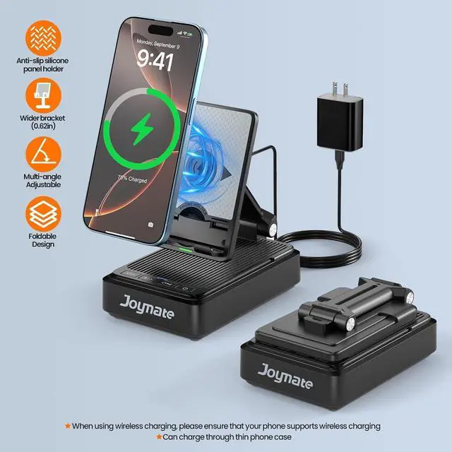 Multi-Functional Wireless Charging Stand: Easily power up your smart phone without hassle of cables and hold your phone steady while listening to your favorite tunes. Cool 3-in-1 accessory for desk space saving ideal for using in the living room bedroom kitchen or office. This wireless charging phone holder comes with the cable and charger please note it is not power bank. Loud Speaker with