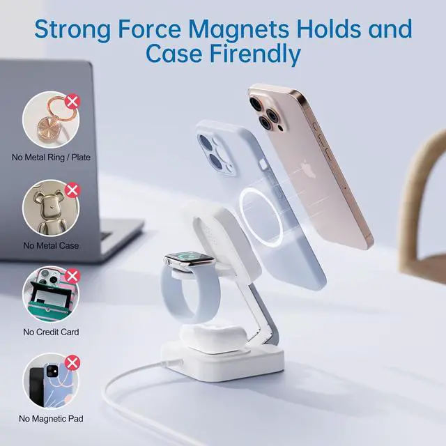 Multi-Protection: Our wireless charger is F-CC certified the charging station is made of ABS fireproof material has upgraded coils white high-end appearance strong magnetic suction overcharge overvoltage overheating protection foreign object detection and other functions. Rapid heat dissipation to provide you with a safer charging experience. Fast Mag-Safe.