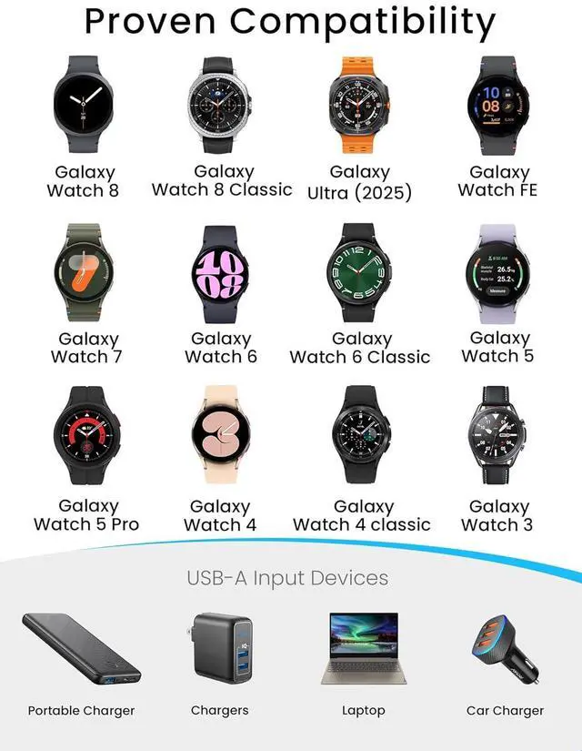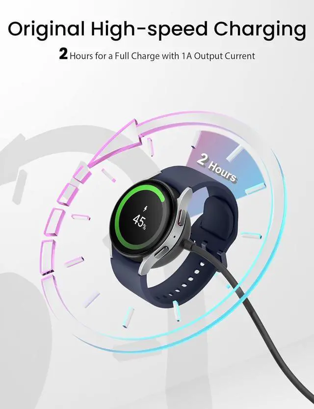 Charging Speed: Intended for your Galaxy Watch 7/6/5/4/3 fast charging speed do not worry this replacement charging cable is wasting precious timeEnhanced