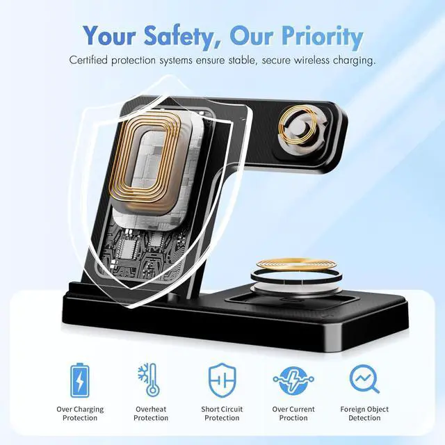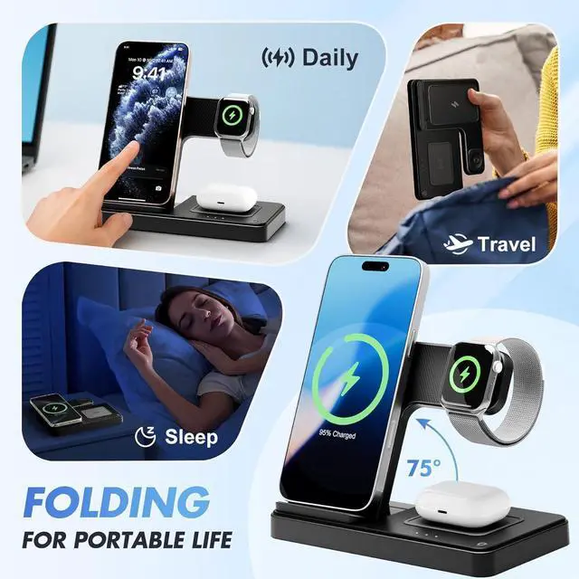 Ecosystem: Designed to charge three devices at once - for iPhone for Watch for AirPods (with wireless charging case). A perfect match for users seeking a clean cable-free desk or nightstand setup. Ideal for remote workers students and home office professionals who rely on multiple devices daily. Foldable Design for