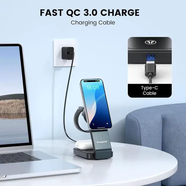 Safety Charger: The 3 in 1 charging station is passed FCC certification. Built-in 2 coils and smart chip intelligent current protection system reasonable internal circuit design. This charging station ensures your devices are always safe during use. 15W Fast