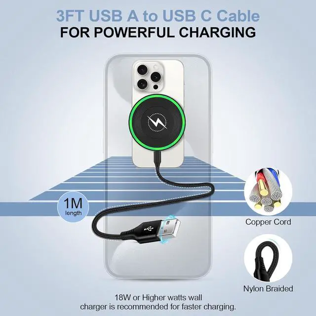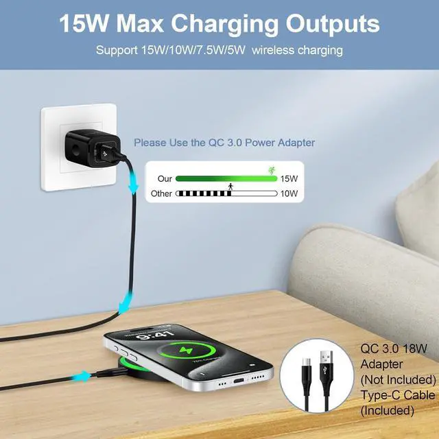 What You Get: 2Pcs 15W wireless charger fast charging pad android phone wireless charging station 2Pcs usb-a to usb-c charging Cable (3ft) Please Use the 18W or higher usb wall adapter for stable charging. (adaptive not included).