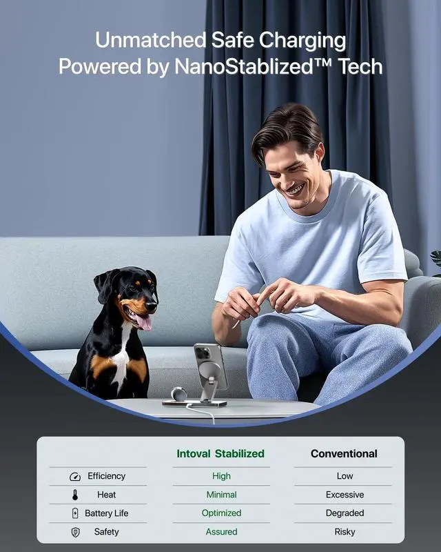 ?????? -????????????????????????????????????????????????: Powered by the latest nano-chip and certified by Qi2 this charger delivers up to 15W of wireless fast charging for iPhone 1612 series. Charge your iPhone 15 to 50% in just 48 minutes and reach full power in about 2 hours and 15 minutes40% faster than standard wireless chargers. Also charges Watch and AirPods efficiently. Enjoy high-speed charging for all your essentials without slowdowns or delays.?????????????? &????????????????: Designed with portability in mind the Intoval qi2 magnetic charger folds down to a compact 150x76mm sizeabout 1/3 smaller than other similar products. Its sleek foldable form makes it the perfect travel companion easily slipping into your bag for convenient charging anywhere anytime.??????????????????????????????????????????????????: Equipped with upgraded N52 magnets the Intoval 3 in 1 wireless charger ensures stronger magnetic alignment than standard wireless chargerskeeping your device firmly in place even with slight bumps or movements. Its compatible with most MagSafe cases and regular cases up to 5mm thick of course for a better use of the experience is recommended to use with magsafe case!??????????????????????????????????????????????: Powered by NanoPulse Monitoring the Intoval 3-in-1 charger provides intelligent protection against overheating overvoltage and overtemperature. Built-in safeguards help maintain your devices battery health and extend its overall lifespan. Charge with confidence knowing your devices are protected every step of the way.????????????????????????????????: This Intoval 3-in-1 wireless charger includes a 5ft ( 1.5 m) USB-C cable50% longer than the standard 3.3 ft cables found with many chargers. The added length gives you more freedom when positioning your charging station whether it's on a nightstand office desk or even across the room near a wall outlet. No more struggling with short cablesenjoy a more flexible and clutter-free setup wherever you are.????????????????????????????????????????????: Compatible with the latest iPhone 16/16 Pro/16 Pro Max as well as iPhone 15/14/13/12 series all Watch models and wireless charging-enabled AirPods. This Intoval 3-in-1 charger ensures seamless magnetic alignment and efficient charging for your ecosystem. Whether you're winding down at home working at your desk or heading out on a trip it keeps all your essential devices powered in one sleek and organized place.??????????????????????????: Includes the 3-in-1 magnetic charging station a???????????? -?????????????????????????? a???????????? -???????????? -???????????? and a??????????????????. Backed by a 24-month warranty and lifetime technical support. Our responsive customer service team is here 24/7 to help with any questions.