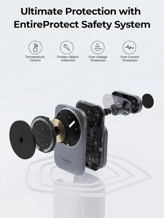 )EntireProtect: Safety first MagFusion 3-in-1 charger station is armed with intelligent protection systems foreign object detection temperature control over voltage protection short circuit pre and over current protection