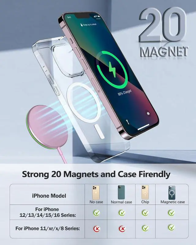 ?? Specifically for iPhone 16/15/14/13/12 SeriesMagnetic Wireless Charger provides up to 15W (max) wireless fast charging for your iPhone. Mag-safe wireless charging pad is perfectly compatible with iPhone 12/13/14/15 /16Series /3 / 2 models and iPhone with Magnetic cases.?