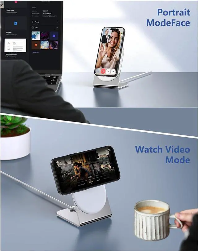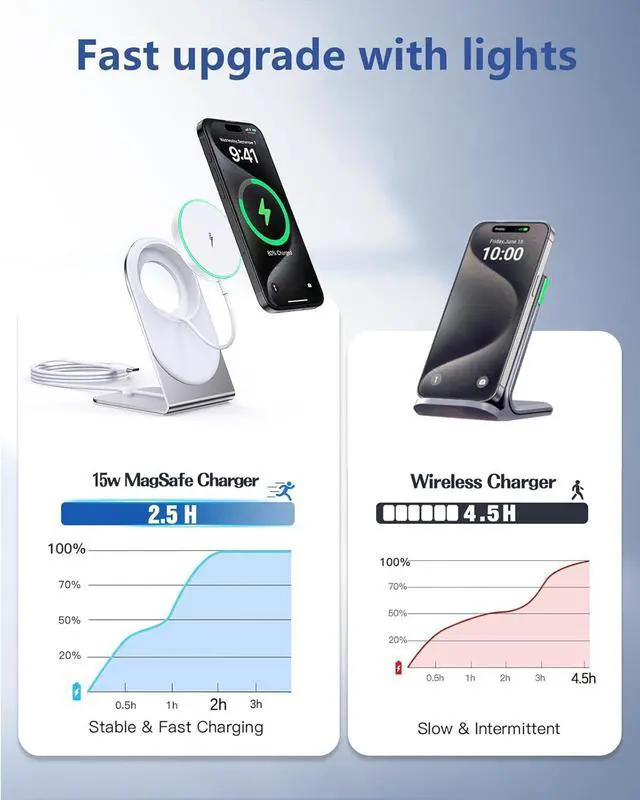 Wide Compatibility: This Mag-Safe charger stand includes a 5ft USB-C cable and features upgraded technology fully charging your iPhone in just 2.5 -3 hourstested for reliability. Compatible with iPhone 16/15/14/13/12 series and AirPods 3/2 Pro. For best results use without a case or with a Mag-Safe case. Fully supports the original Mag-Safe charger allowing you to place it on the stand or use the magnetic charging pad separately on a table. The secure magnetic design ensures easy attachment and detachment for seamless charging. Enhanced User Experience & Smart