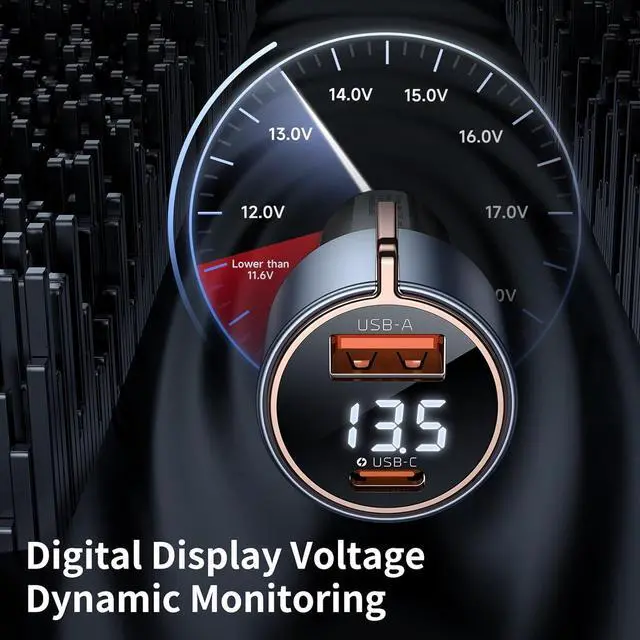 Digital display voltage real-time monitoring: After connection the LED data displays real-time voltage and power and automatically monitors the car battery voltage. This real-time monitoring can make your driving safer! Universal 12V-24V mainstream models universal car/large truck models.