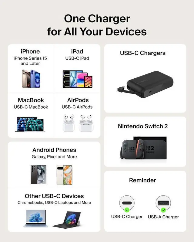 FAST CHARGING TECHNOLOGY: This retractable USB C charger rapidly charges an iPhone 16 Pro from 0-50% in just 27 minutes and Galaxy S25 in 31 minutes. * Chromebook MacBook Air 13 iPad Air 13 Pixel 10 and much more also receive a fast safe charge.