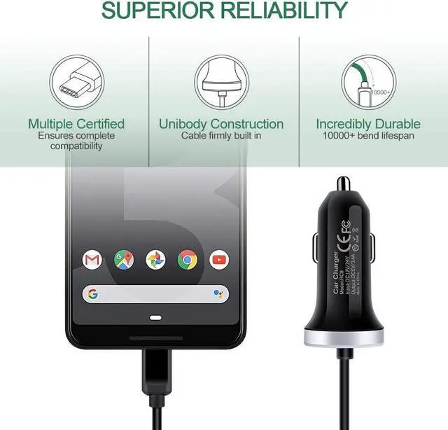 What You Get: 3.4A Car Charger Adapter with Built-in Type C Charging Cable. We provide 7x24 hours friendly customer service. If you have any question while using usb c car charger please tell us we promise to solve your problems within 24 Hours!