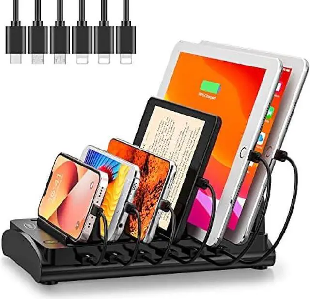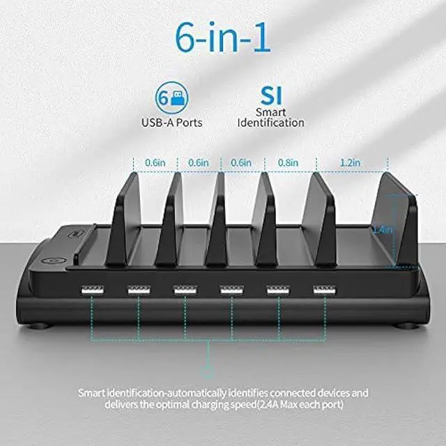Neat and Organized-- Bototek Charging station for multiple devices, the 6 port USB charging station can charge up to 6 devices in one place simultaneously. Phone charging station keeps your desktop organized and clean, no cluttered cables, without using up all your USB wall charger outlets.