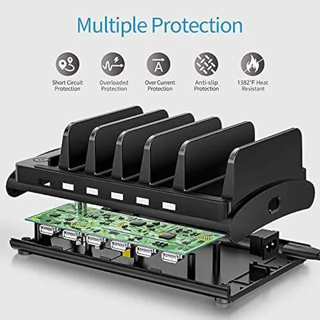 Multi Protection-- Every port of the charging stations will offer exactly the charging current required to match your devices needs, keeping your phones safe. The phone charging station features a safety switch giving you a quick visual indication that it is powered on.