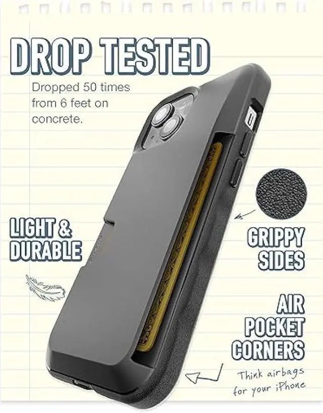 - So your money wont jiggle jiggle , & - Drop-tested: 50 drops at 6FT onto concrete & - No more flap fumbling - Textured sides, smooth back, pocket-friendly - Good news is, the openly accessible ports make cable charging a piece of cake