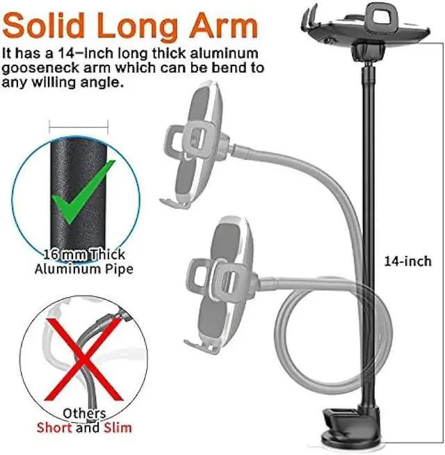 BUILT TO LAST BFF FOR YOU: It is a multi-purpose gooseneck phone holder stand, will mount securely on most flat surfaces such as window, desk, nightstand, cabinet, and table, that will free your hands for watching movies, shooting live, browsing recipes, or making a video call, etc.