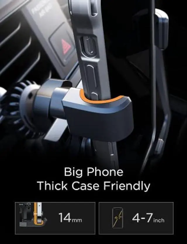 UNIVERSAL COMPATIBILITY: This universal car cell phone holder will firmly hold all the smart phones (4-7in) even with thicker case (14mm) compatible with iPhone 13 12 pro max/ 11 pro max/XR/X/8/7/6/5, Note 20 10/ Galaxy S10+/ S9/ S8 /S7 /S6 and more.