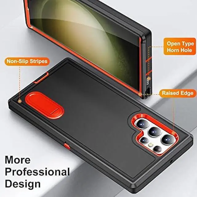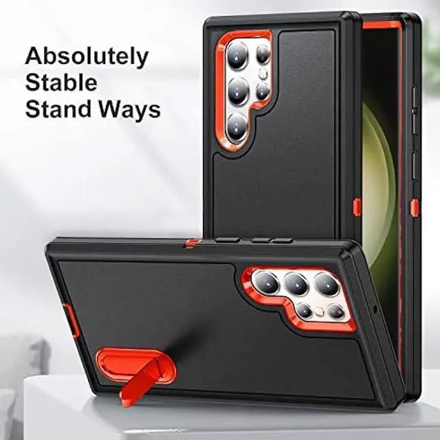 [Built-In Kickstand]: This Samsung Galaxy S23 Ultra Case with stand works perfectly horizontal positions. Convenient for reading, watching movies, playing games, browsing the web and face-to-face chatting with friends. Provides hands-free landscape viewing angles your hands free
