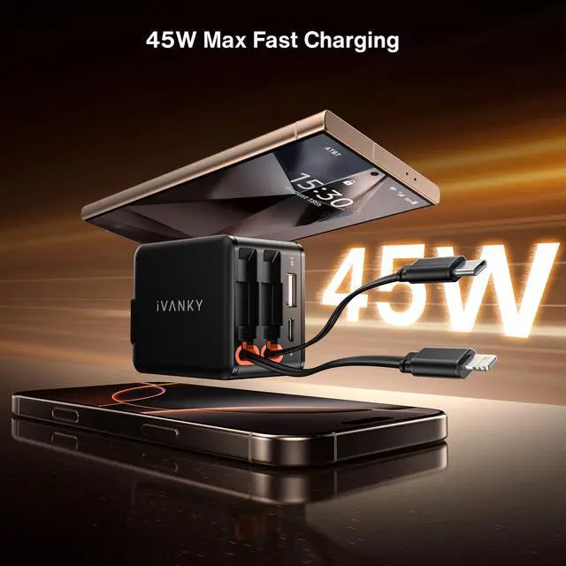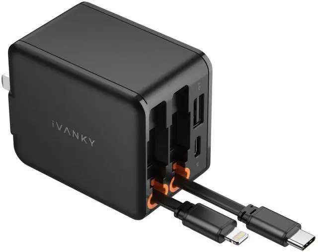 Ultra-Compact & Travel-FriendlyFeatures foldable prongs and a slim profile, easily fitting into bags. The retractable cables replace extra cords, perfect for on-the-go use