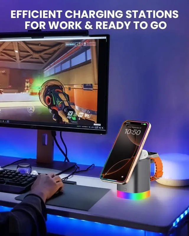 The JoyGeek cost-effective for iPhone 15 wireless charger is compatible with various device models, including: iPhone 15-12 series, Apple Watch Ultra 2, Ultra, Series 9-2, SE, and AirPods Pro 2, Pro, 3, 2. For an enhanced charging experience, use a magnetic phone case.