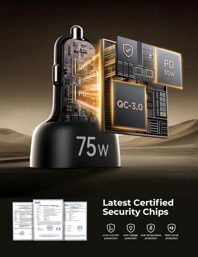 Confidence: Built-in smart IC prevents overheating, overcurrent, and overcharging. Auto-detects devices to optimize car USB charger efficiency. Rugged PC+ABS shell + UL/FCC/RoHS certificationssafety first, every mile