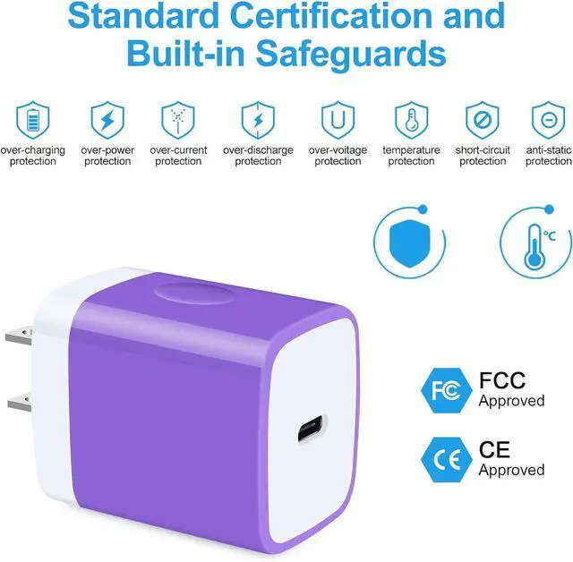 Safety Insurance USB C Power Adapter: The intelligent circuit design for 20W PD 3.0 Charging Cube protects against short circuiting, over-heating, over-currents, and over-charging. Charging stops when battery is full.