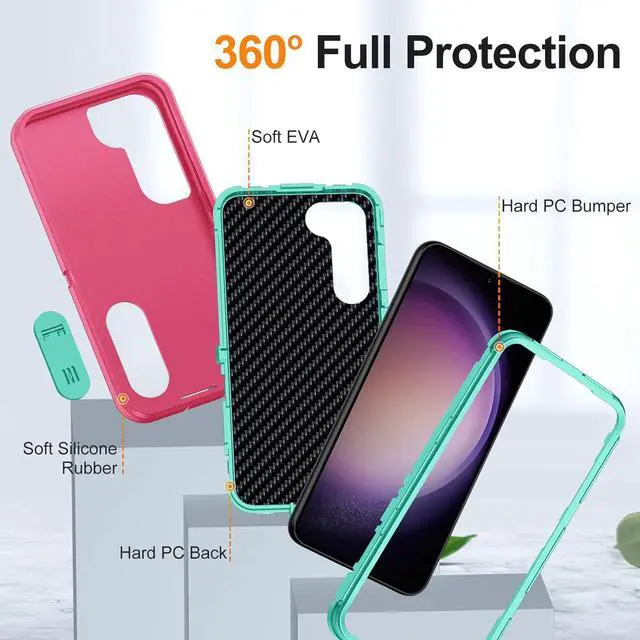 [Full Body Protection]: This three-in-one combination of military grade tough protection S23 5G Case, Hard PC + Solid inner polycarbonate shell soft cushioning rubber outer S23 Protection cover, Four-corner grooved airbags, unique shock absorption design, more comprehensive protection of the fragile parts for the smartphone. Raised lips keeps camera lifted to prevent your lens from shock, collision and scratch. Dust Protection port plugs lock out dust, dirt so your device stays clean and debris free
