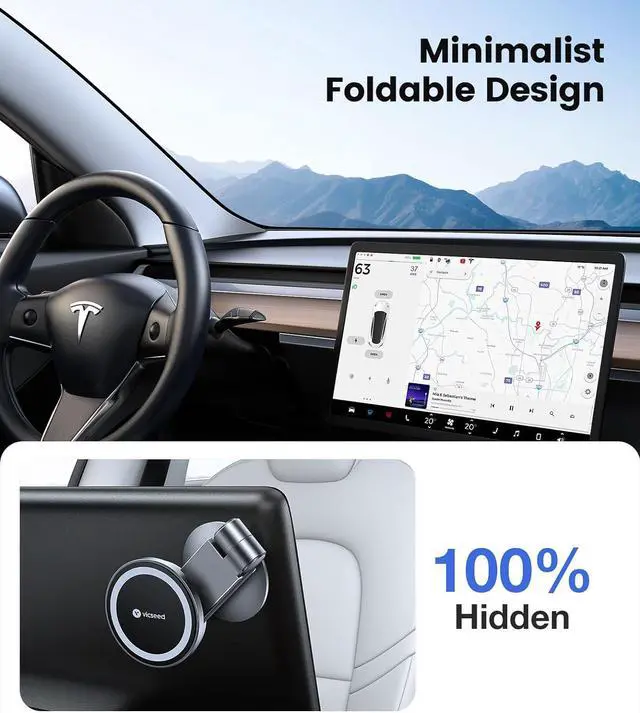 VICSEED Tesla Phone MountStrongest Magnet PowerMagSafe Car Mount for Tesla Model 3 Model Y, Foldable Hidden Tesla Phone Holder Fit for All Phone, Tesla Model Y Accessories Tesla Model 3 Accessories
