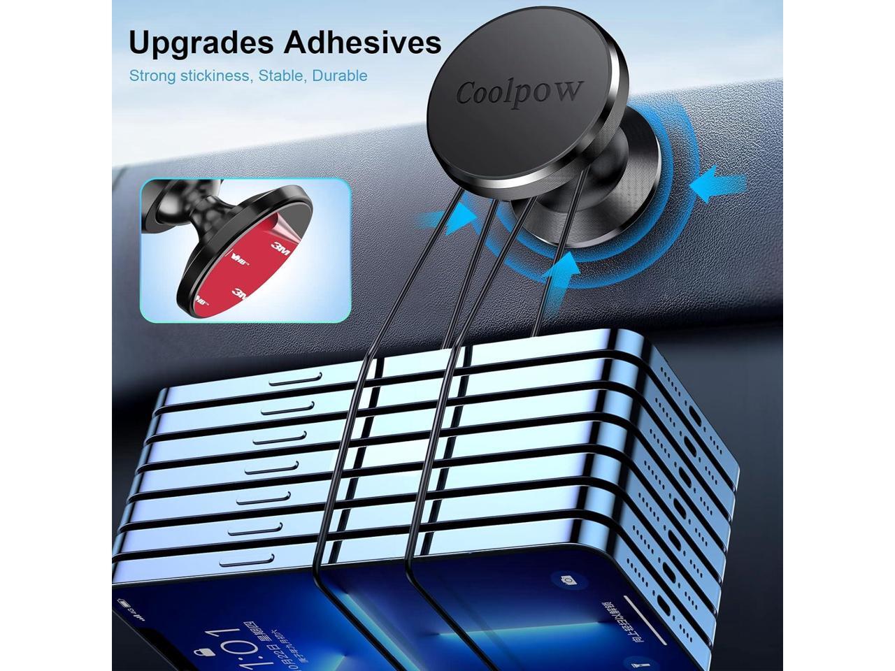 Coolpow 2-Pack Magnetic Phone Holder for Car Phone Holder MountStrong Magnet Phone Mount for Car Mount for iPhone Magnetic Car Phone Holder4 Plate Cell Phone Holders for Your Car Accessories