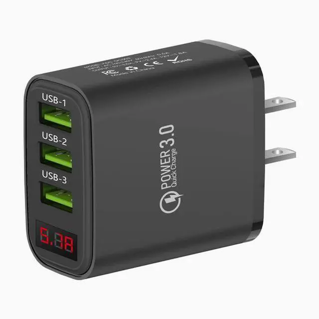 3USB Multi-interface US standard charging head mobile phone charger fast charge with screen number display 3 for Apple 15/16 ProMax Black