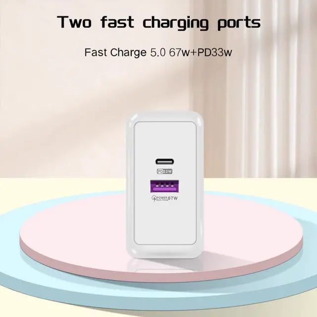• Dual port fast charge PD33W: Fast charge USB port 67W: Super fast charge Note: This model does not support computer charging