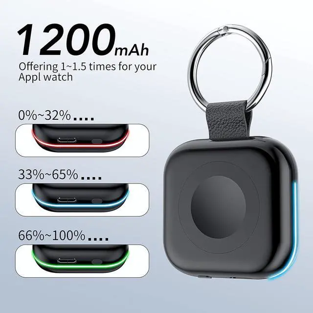 Portable Charger for Apple Watch, Wireless Magnetic iWatch Charger 1200mAh Mobile Power Travel Keychain Accessory Smart Charger for Apple Watch Series 10/9/8/7/6/SE/5/4/3/2/1/UItra/UItra 2