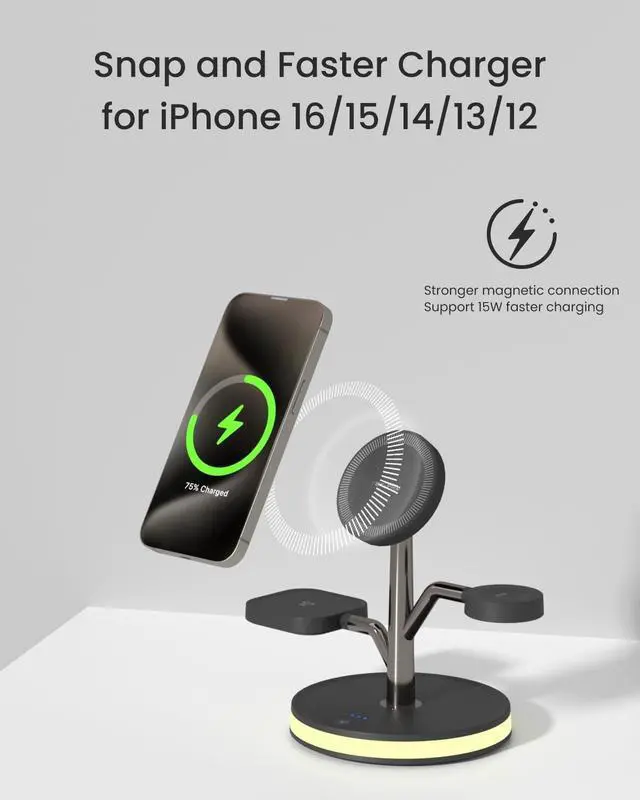 Features Magnetic Attachment, Magsafe Compatible, Multi-Device Charging, Fast Charging, Wireless Charging