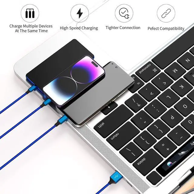 Fast Charging Cords: This multi portable 3 in 1 charging cable delivers stable voltage and current protection ensuring your devices are charged safely at maximum speed. Plus the iPhone charger cord also supports data transmission with speeds up to 480 Mbps allowing you to transfer files in seconds.