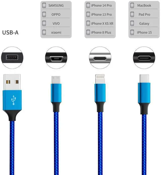 Package: 2Pack 4ft multiple phone charging cables enable you to charge your phone at ease not restricted by the length of the cable. And it's super handy to carryone multi phone charger meets all your demands for families travel work business trips and other occasions.