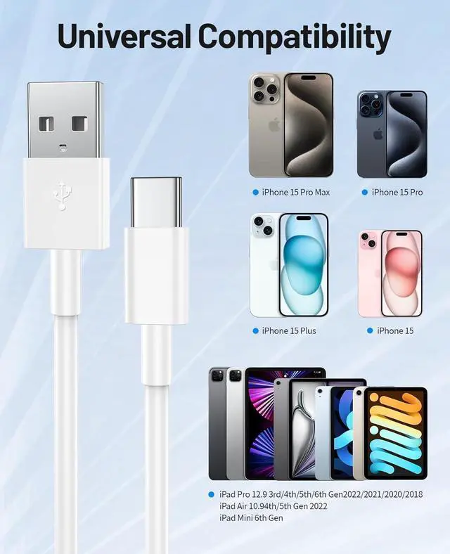 Our product is capable of passing over 20 000 bend testsUSB C Devices Compatibility The car carplay cable is compatible with iPhone 16/16 Plus/16 Pro/16 Pro Max/iPhone 15/15 Plus/15 Pro/15 Pro Max/ S24/S23/S22/S21 as well as the iPad 10th generation iPad Pro 12.9 -inch (3rd 4th 5th generation) iPad Pro 11-inch (1st 2nd 3rd generation) the new iPad Mini 6 (1 gen) and the iPad Air (4 gen) 4Pack iPhone 15/16 Car Charger Cord You will receive 4Pack 3.3FT USB C Car Carplay Cables. If you have any inquiries please don't hesitate to contact our professional and responsible customer service