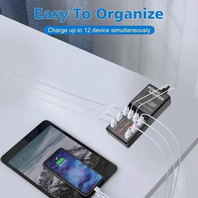 ADVANCED CHARGING TECHNOLOGY: The USB charging station utilizes the latest Gan technology to provide the fastest charging speeds, with 3 built-in transformers, one to control each of the 4 USB ports, ensuring that the current can reach up to 2.5 amps per port when 12 USB ports are in use at the same time, and up to 3.5 amps per port when 4 3.5A ports are in use.