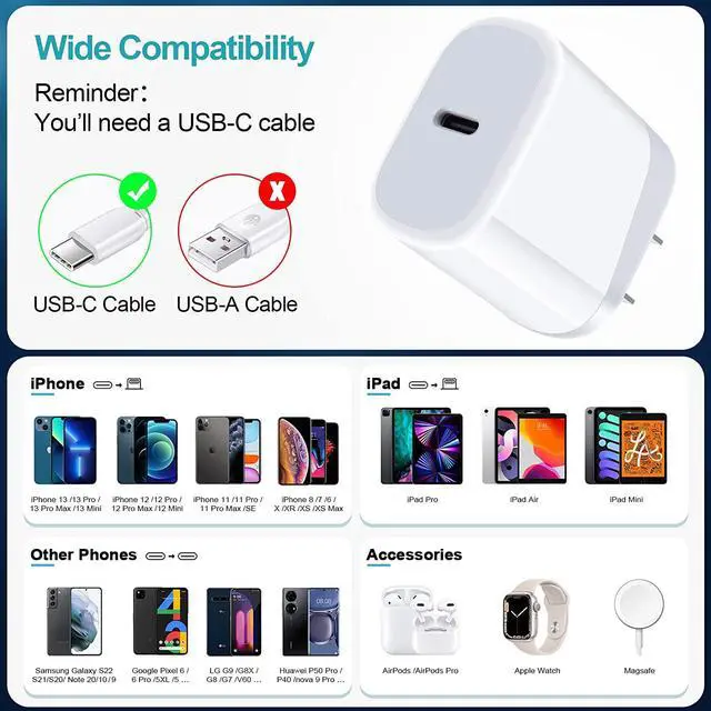 Type C ChargerUSB C Charger Block with 20w PD 3.0 port allows you to charge your a16 5g/a15 5g at top speed. Type C fast charging block with built-in smart IC chip supports multiple charging protocols to optimize maximum charging speed for your devices and protect against short circuit excessive current and overcharging. Cube & PortableSmall size ( 1.1 * 1.65 * 1.85 inch) and compact charging cube wont take up extra space ideal for airport travel and hotel rooms. Fire-proof ABS material is perfect for heat dissipation drop protection corrosion and scratch resistance. What You Get1-Pack USB C Block.