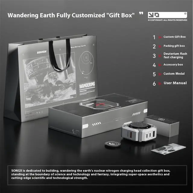 The Wandering Earth GaN Co-branded Gift Box Set, packaging includes: Helium Flash fast charger + data cable + user manual + custom medal + packaging gift box, compact and portable, meeting the commuting charging needs of multi-system devices.