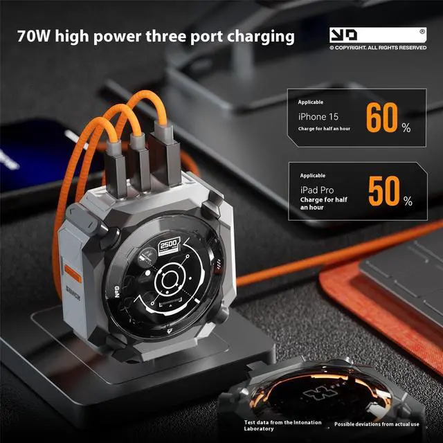 1. The Wandering Earth GaN Co-branded 70W GaN 3-port Fast Charger, compatible with iOS/Android/Windows/handheld console multi-system devices, single-port max 70W, enabling 1.5-hour full charge for thin and light laptops.