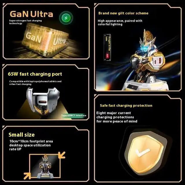 2. Gallium nitride core technology, better performance than silicon material, better pressure resistance and conductivity, support multi-device fast charging; excellent heat dissipation performance, more worry about use.