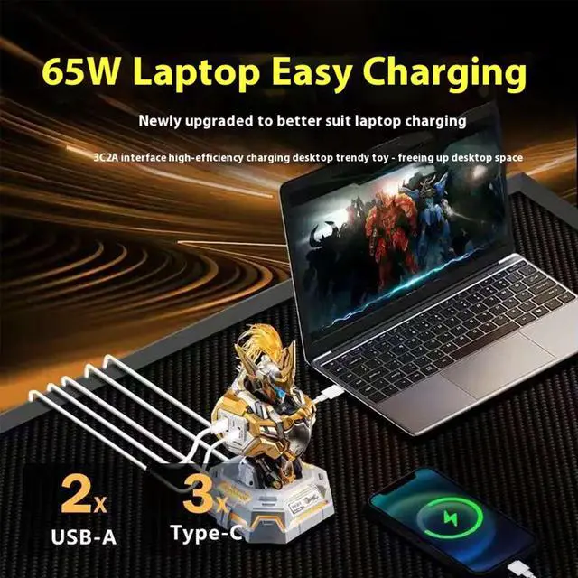 1. 5-port synchronized fast charging, including 2 USB-A ports and 3 Type-C ports, cell phones, tablets, notebooks can be charged at the same time, easy to save time.