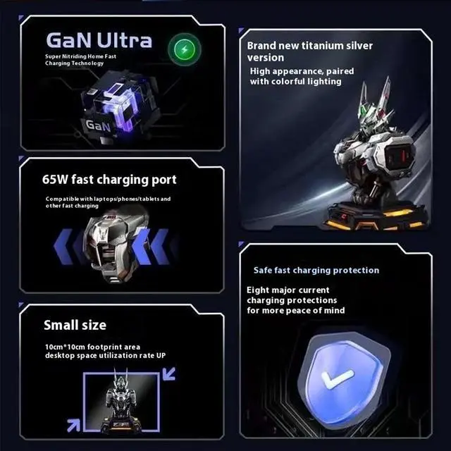 2. Gallium nitride core technology, better performance than silicon material, better pressure resistance and conductivity, support multi-device fast charging; excellent heat dissipation performance, more worry about use.