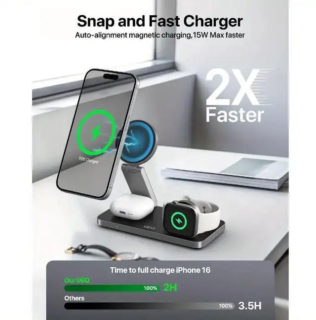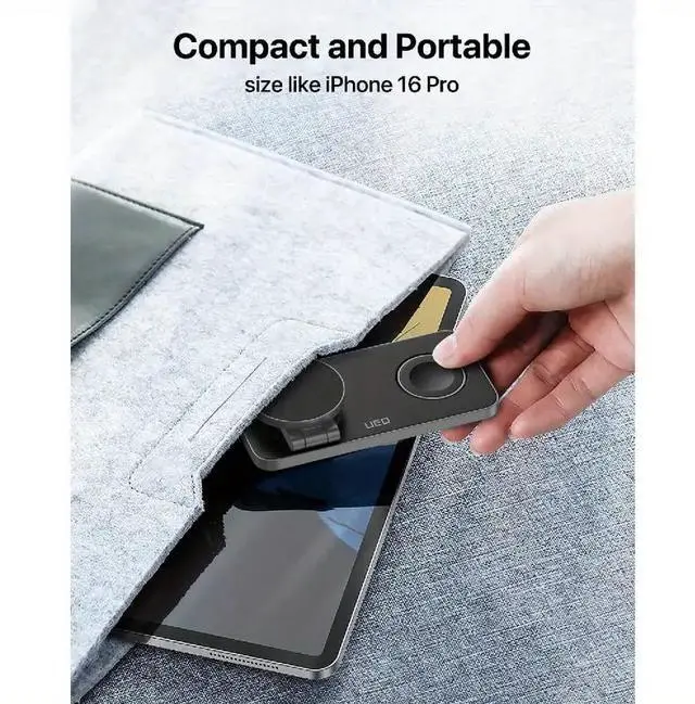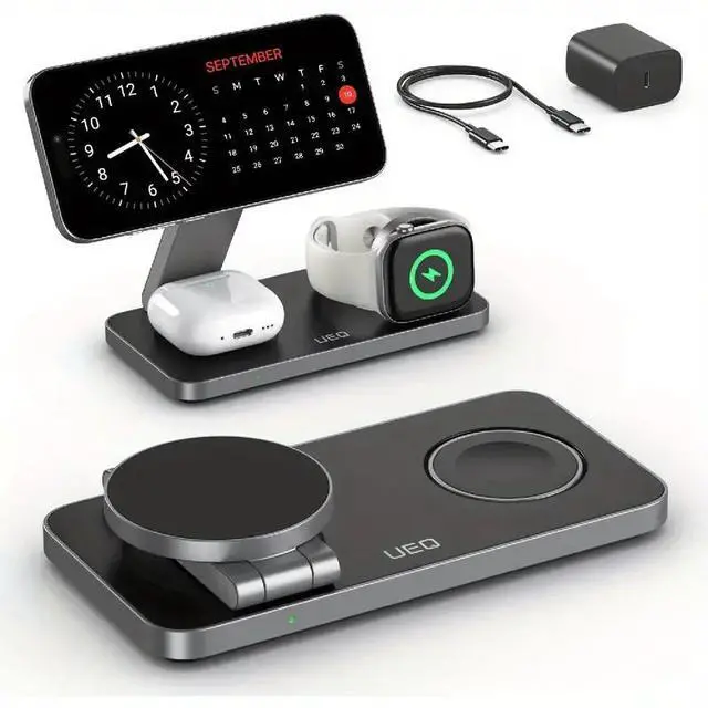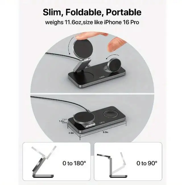 Its foldable, travel-friendly design makes it perfect for home, office, or trips, while the adjustable phone stand supports hands-free viewing in both portrait and landscape modeideal for checking time, messages, or attending video calls. The powerful magnets ensure precise alignment for efficient charging, and the sleek black-metal finish adds a modern touch to any space.