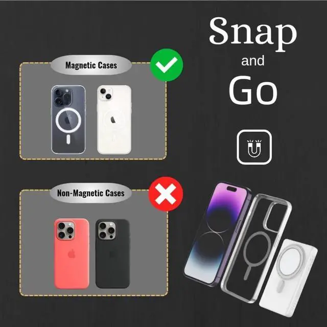 Fast and Safe Charging: With advanced safety features like over-current, over-temperature, and short-circuit protection, your devices remain secure while receiving up to 20W of power compatible with mag safe charger portable for iphone