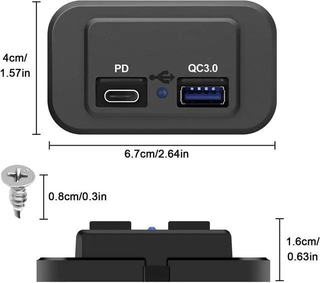 Surface Mounting: The rv usb c outlet 12v wall mount can be mounted on a plane, just a small hole to plug the wire, with the black line attached to the negative and the red line to the positive. The blue light is always on when powered on and is easy to find in the dark