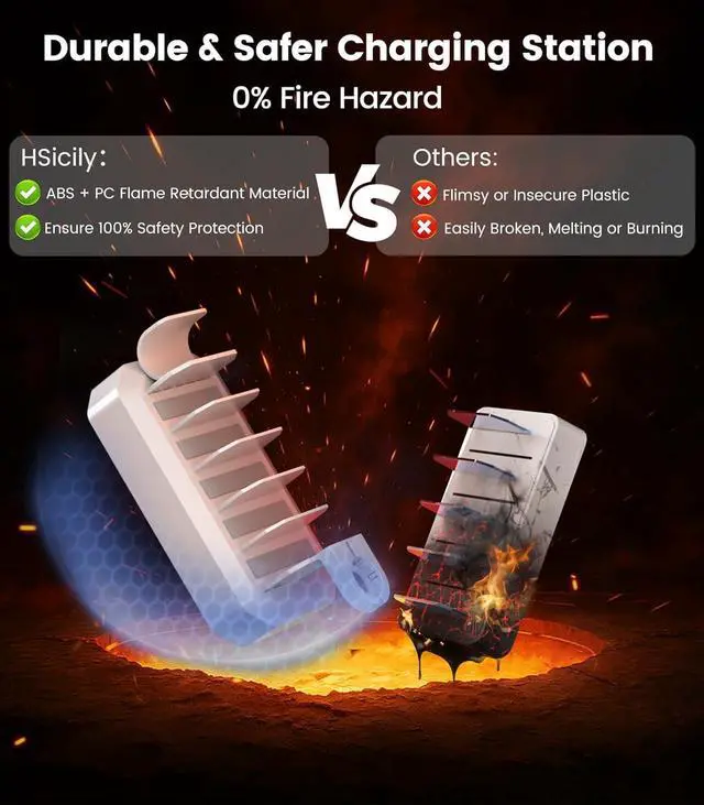 Safety Charging DockWhen the device and the multi charger station are connected, the smart GaN chip will automatically detect and provide the adequate voltage and current to ensure the device will not be damaged during charging. And the non-slip pads on the bottom and between the dividers ensure that your device won' t easily slip off the desk thus preventing your device from being damaged