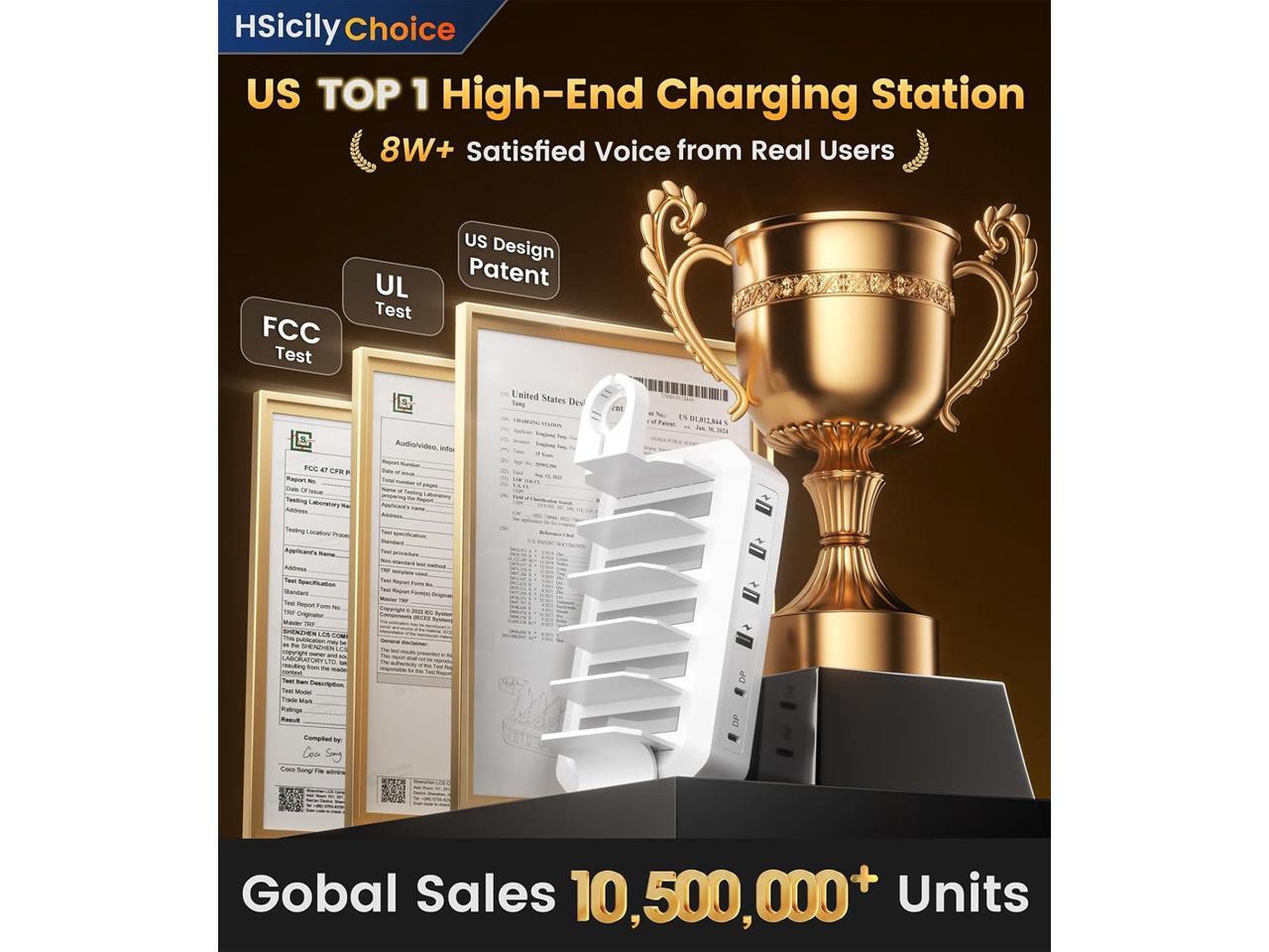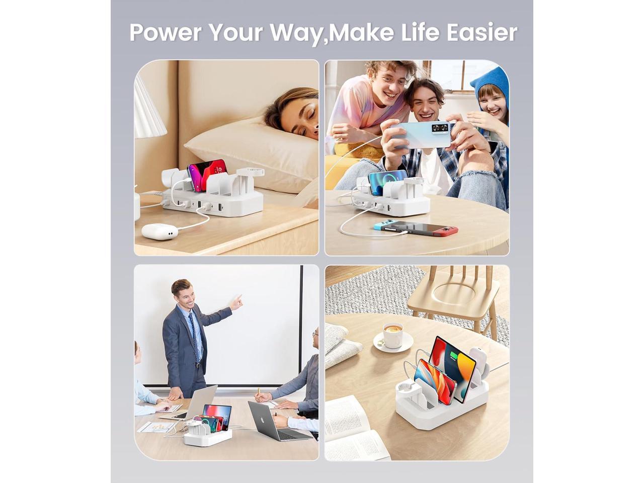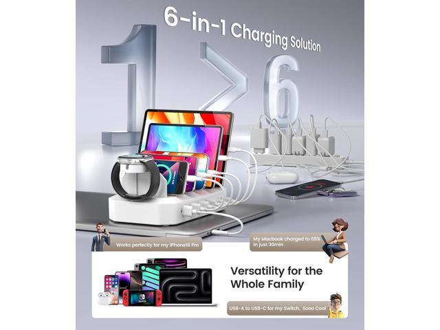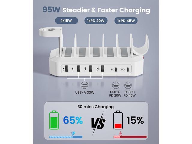 95W Fast Charging Station for Multiple DevicesUL & FCC Certified Safer Charging 6-Port USB Charging Dock with 2 PD-Port, Compatible with iPhone/Android/MacBook/iPad/Tablet/Kindle/Apple Watch & More