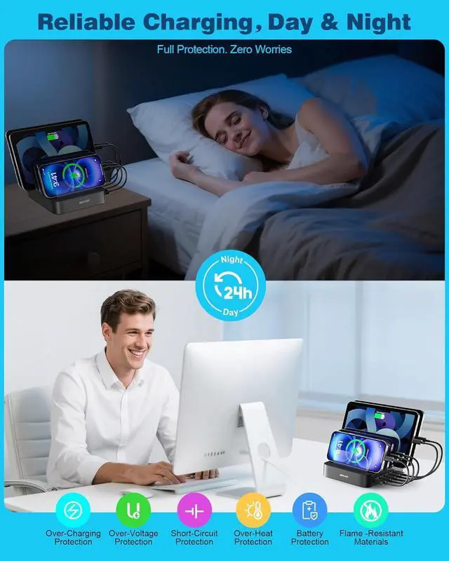 Fast and SmartThis charging station for multiple devices will charge your smartphones, tablets up to 80% than other USB-A charger station with 2.0A or less. Our multi port charging station will automatically detect your devices and adjusts voltage for minimal charging time.