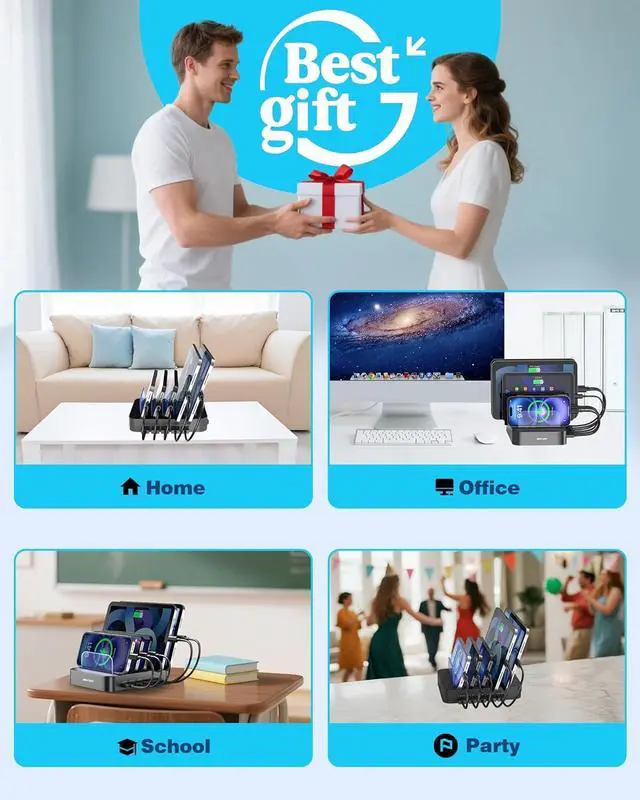 Love by FamiliesThis portable USB-A charger station is a great gift for your dads, moms, mother-in-law, father-in-law, sisters, brothers, coworker, girlfriend, boyfriend. Charging station can be used for your home, kitchen counter, desktop, nightstand, office, school, hotel, travelling..