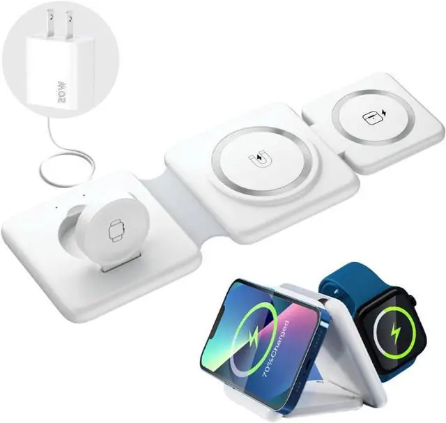 Foldable Design & PortableThis charging station is foldable, slim, compact, and easy to store and carry. Simply put in your pocket or backpack. It does not take up space which is perfect for office and travel.