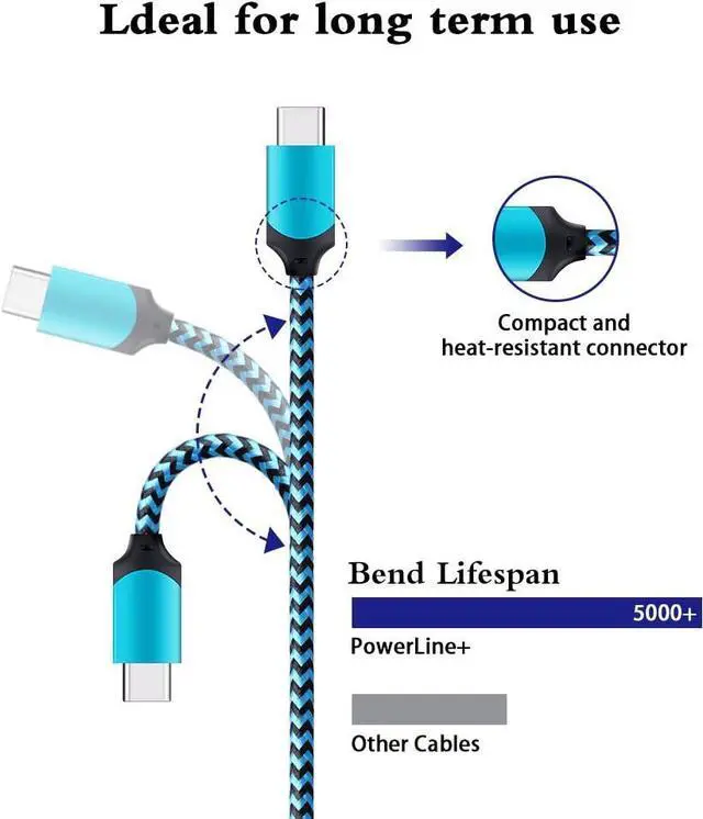 Incredibly Durable: Durable nylon braided type c cable jacket protects wire cores and resists kinks, metal-plated connector resist heat and corrosion, 5000+ bend lifespan.