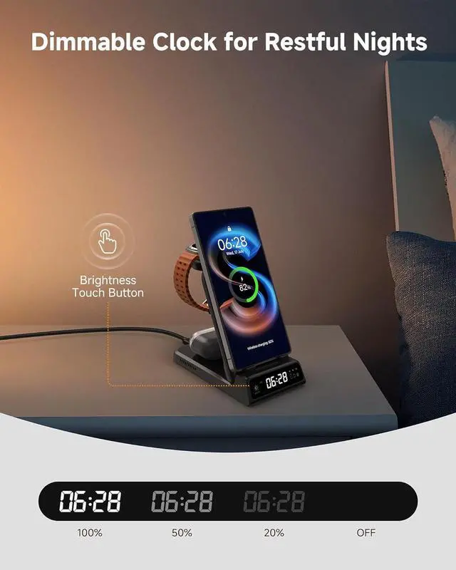 Charge All at Once - Simply place your galaxy watch, phone, and earbuds on the charger to power up simultaneously. A single cable and charging brick (not included) keep your setup cleanno more clutter from multiple cords. Simplify your life with a cleaner, more efficient way to charge